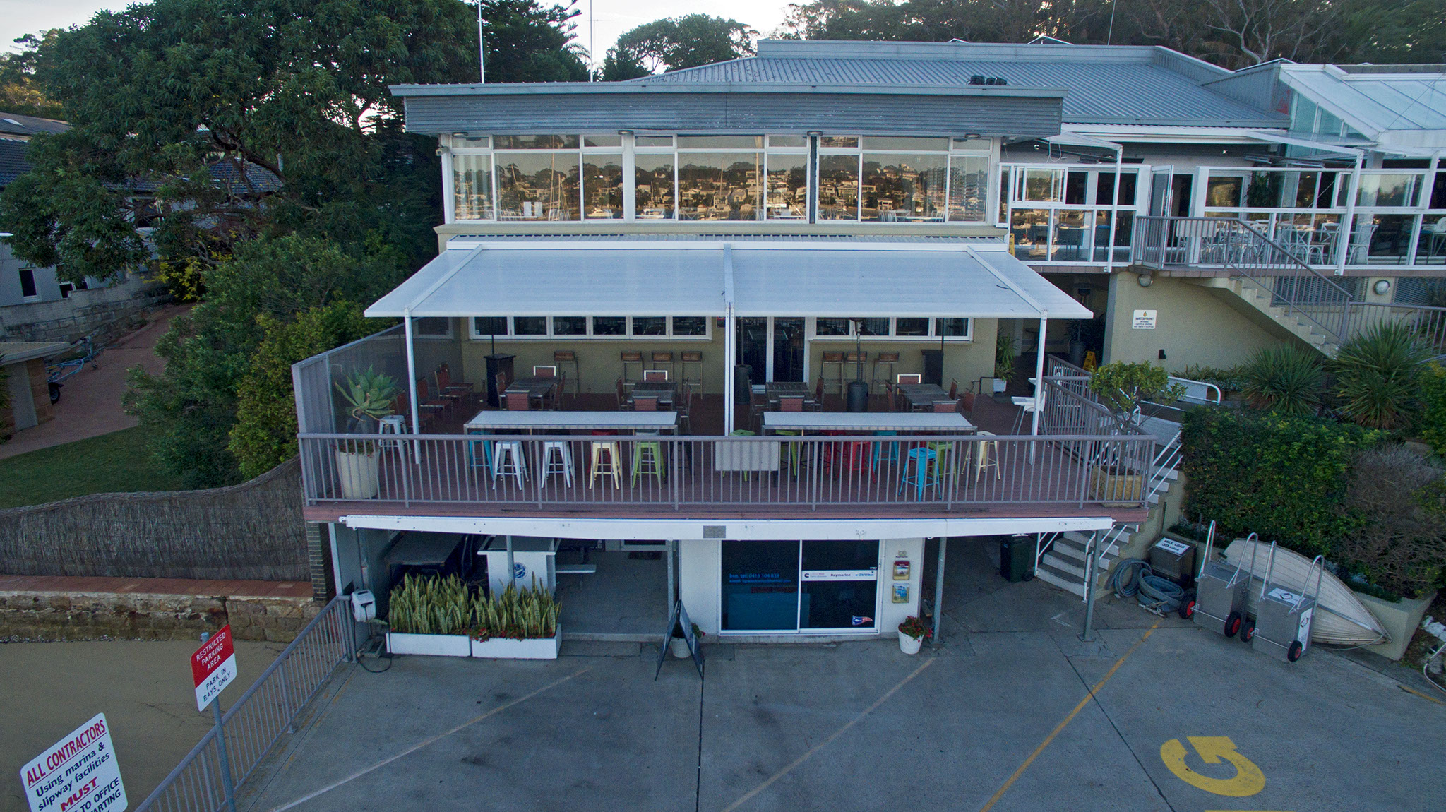 Port Hacking based, our workshop is located waterfront below the RMYC Port Hacking Bistro, parking is available at RMYC Port Hacking. Deliveries to front reception.
